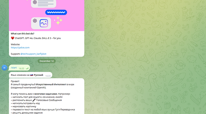 - Доступность через Телеграм: вы можете общаться с ботом прямо в мессенджере, что особенно удобно для мобильного использования.